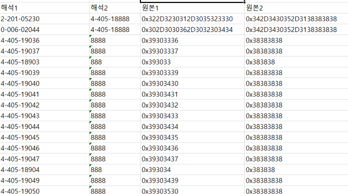 일단 원본값을 얻기위해서는 데이터가 깨졌기때문에 꽤나 골치아펐다.