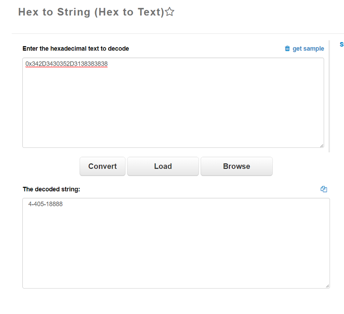 | 0x312D3130362D3033383332 | 0x342D3430352D3138383838 |