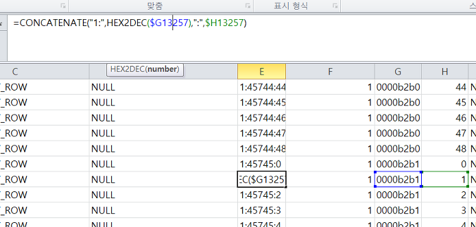 위치 데이터는 먼저 :를 기준으로 Page ID를 스플릿해준다음 16진수를 10진수로 변환하고 Slot ID와 CONCAT함수를 이용하여 조합했다.